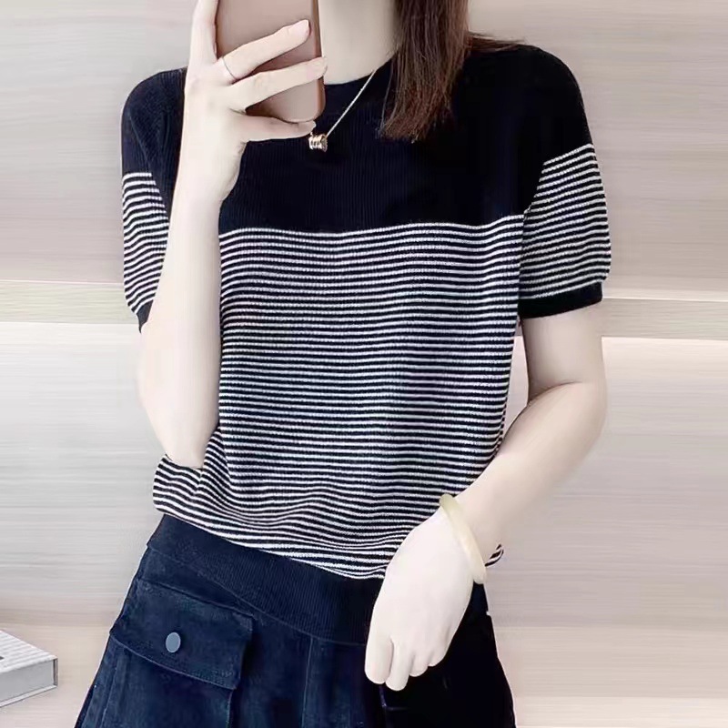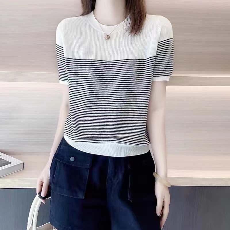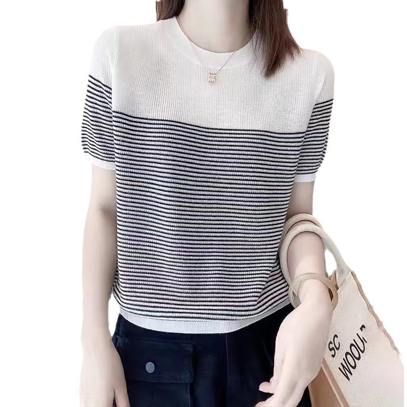 Round Neck Ice Silk Knitwear Thin Simple Pullover Short Sleeve